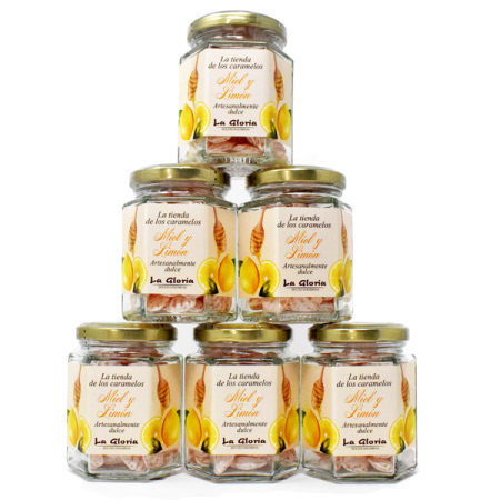 Bote Cristal 100g con Caramelos de Miel y Limón.