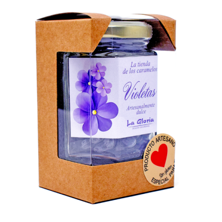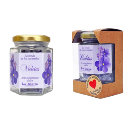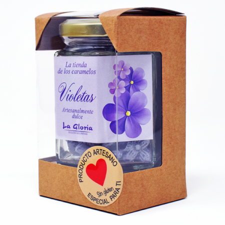 Bote de Cristal 100 gr con Caramelos de Violetas. Nuestros Bote de Cristal 100 gr con Caramelos de VioletasDivertidos caramelos con forma de violetas en botes de cristal de 100gr
